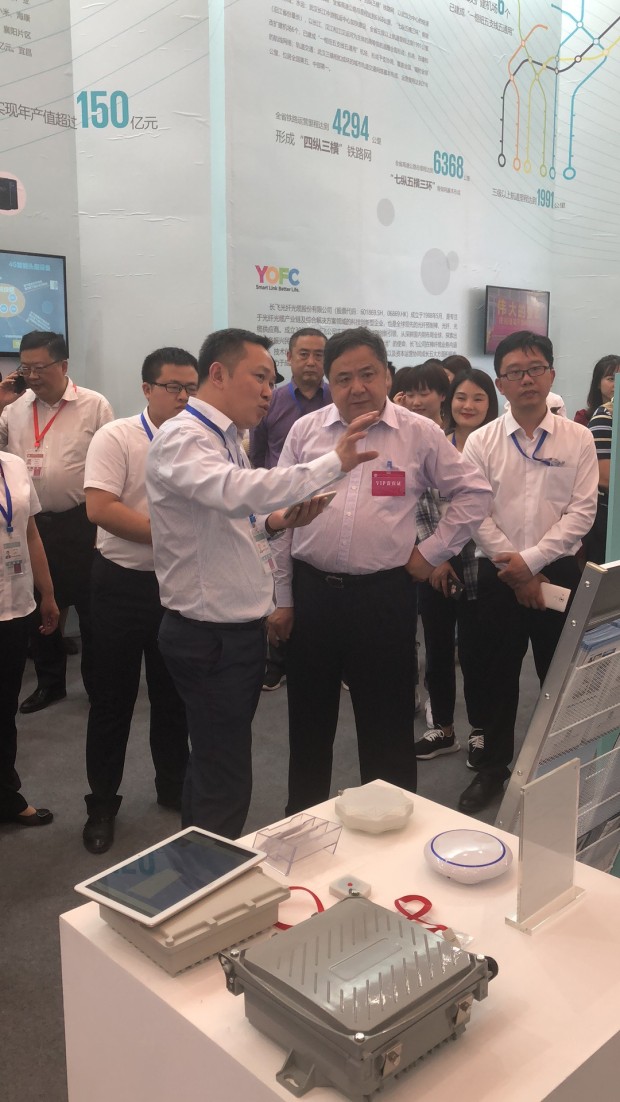 湖北省第十一屆政協副主席許克振蒞臨公司展區親切指導,公司董事長曾建勇向許主席詳細描述北斗+UWB精準軌跡管理系統,該產品是公司與武漢大學北斗導航院士團隊合作開發的在軌道交通領域的應用。許主席鼓勵公司繼續在產學研合作上加快步伐,加強企業核心技術實力的積累,祝愿企業在軌道交通領域取得更大的輝煌。