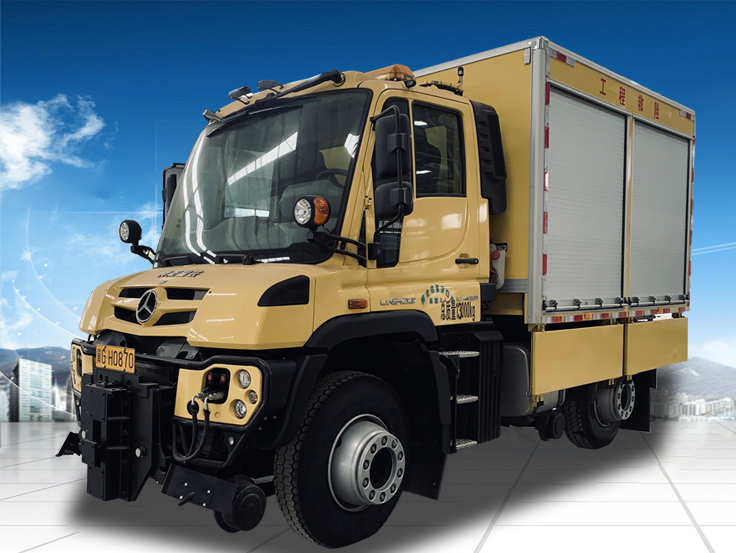 公鐵兩用救險車以進口汽車底盤和全金屬專用貨廂為載體,將不同專業的、國際一流的工程救援工具集成裝于貨廂內部,同時配置列車救援牽引作業功能,能夠快速應對軌道交通行業各種現場的緊急搶險和事故救援工作。