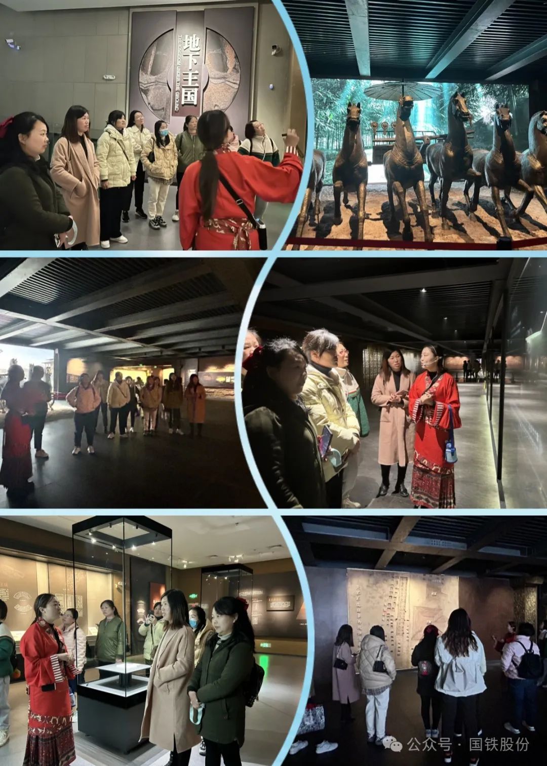 在這春和景明的季節里,女職工們上午來到熊家冢國家考古遺址公園——楚王車馬陣景區,踏著自然味道的清新綠,呼吸著高純度凈化的空氣,在景區講解員熱情地帶領下,瞻仰楚王陵、參觀殉葬墓等核心景點,傾聽楚王車馬陣悠久的人文歷史及文物背后的故事。在全新升級的車馬陣展廳中,兵車蝶鱗中,銅浮雕、仿夯土繪畫、紗幕投影……沉睡的車馬“活”了起來,攜帶兩千年輝煌奔騰而來。