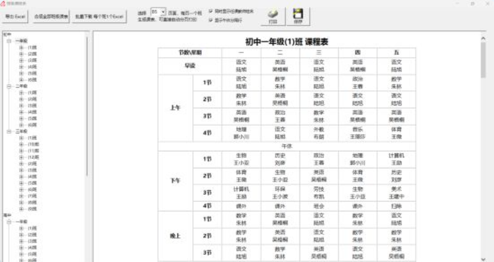 彩蝶排課系統(tǒng)能夠生成8種課程表,包括:全校總課表(給校長,教務處自留)