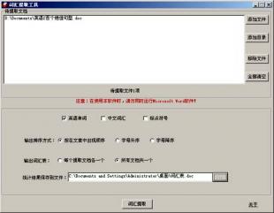 詞匯提取工具,可以將一個或多個Word文檔(.doc;.docx)、網(wǎng)頁文件(.htm;.html)或文本文件(.txt)中所有(中文或英文)單詞提出來形成詞匯表。