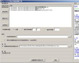 “Word-PPT文檔內(nèi)容批量提取工具”能一次把多個Word文件(*.doc;*.docx)或PowerPoint(*.ppt;*.pptx)幻燈片文檔中指定頁碼范圍、或指定字?jǐn)?shù)的內(nèi)容提取出來保存到同名文本文件中, 可用于自動生成Word或PPT文檔摘要等需求。